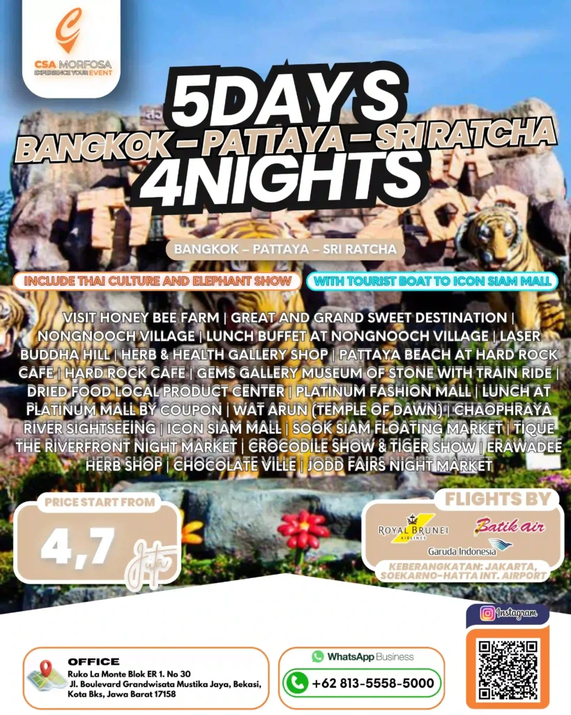 Jadi, apa kamu tunggu? Mari kita mengunjungi Bangkok, Pattaya, dan Sri Racha! Ketiga destinasi ini menawarkan pengalaman yang unik dan beragam. Jangan lewatkan kesempatan ini untuk menghabiskan waktu dengan cara yang berbeda dan menyenangkan.